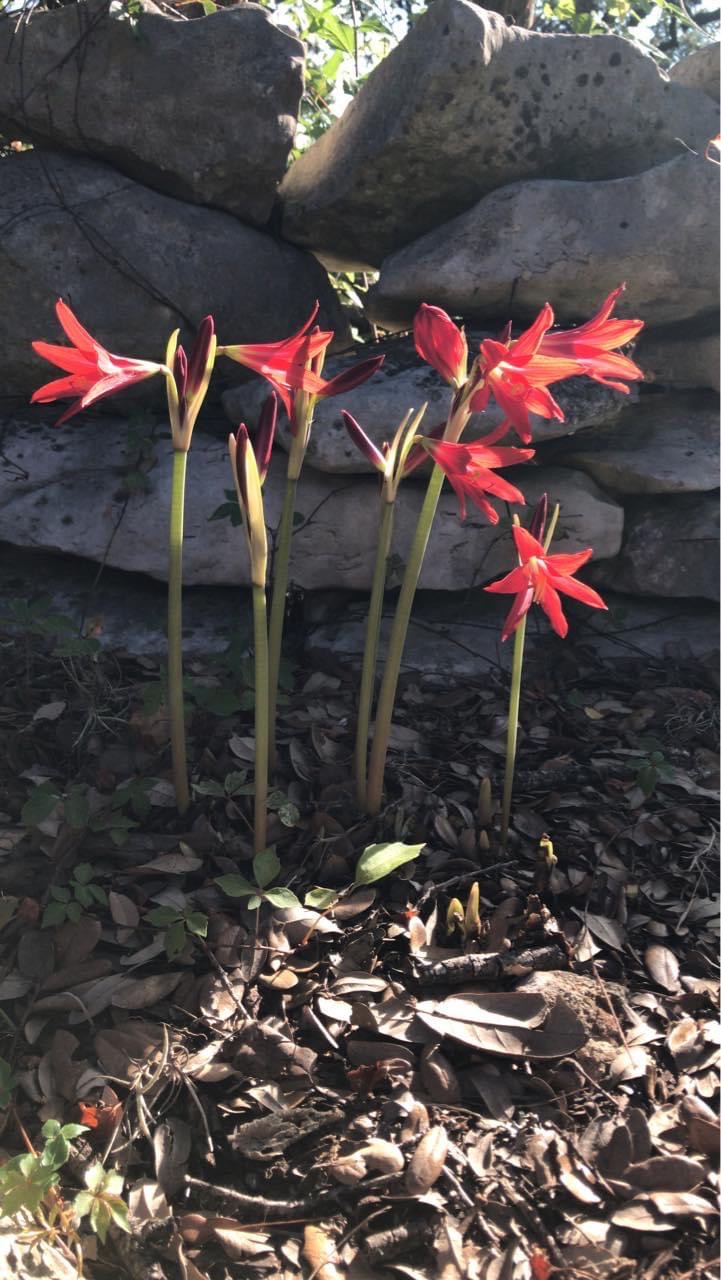 Yes! I just happened to notice yesterday that our September surprise lilies (Rhodophiala bifida) have already begun to bloom! These old bulbs are also called oxblood or schoolhouse lilies.