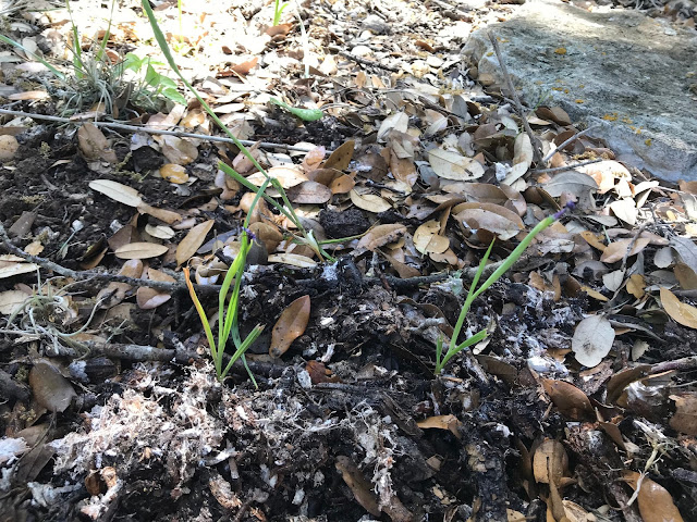 Non-native grape hyacinths, transplanted from a vacant lot that will be developed (owned by Trinity Lutheran Church).