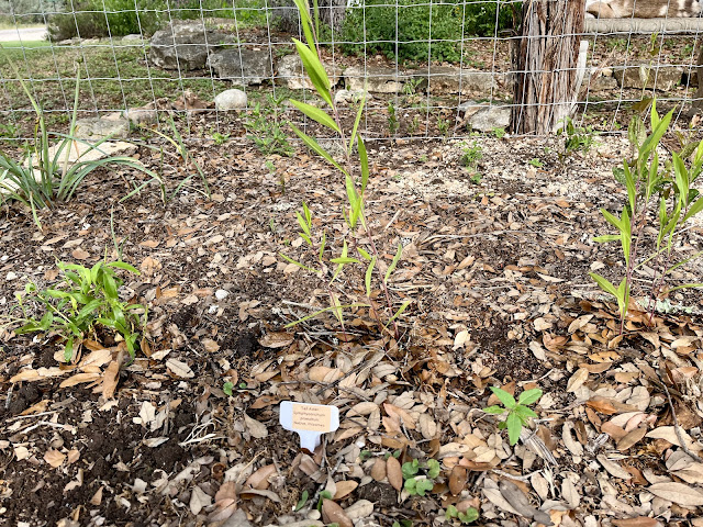 Here's what we brought home from the Festival of Flowers in San Antonio: Jimsonweed (Datura wrightii); skeleton-leaf goldeneye (Viguiera stenolaba); red salvia (Salvia coccinea) and two rosemary plants (latter complimenets of SAWS).